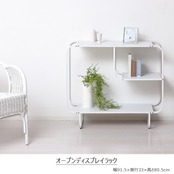 ●白木目柄の棚とスチールフレーム、異素材の組み合わせがおしゃれです。
