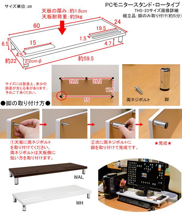 ウォールナット(WAL)とホワイト(WH)よりお選び下さい