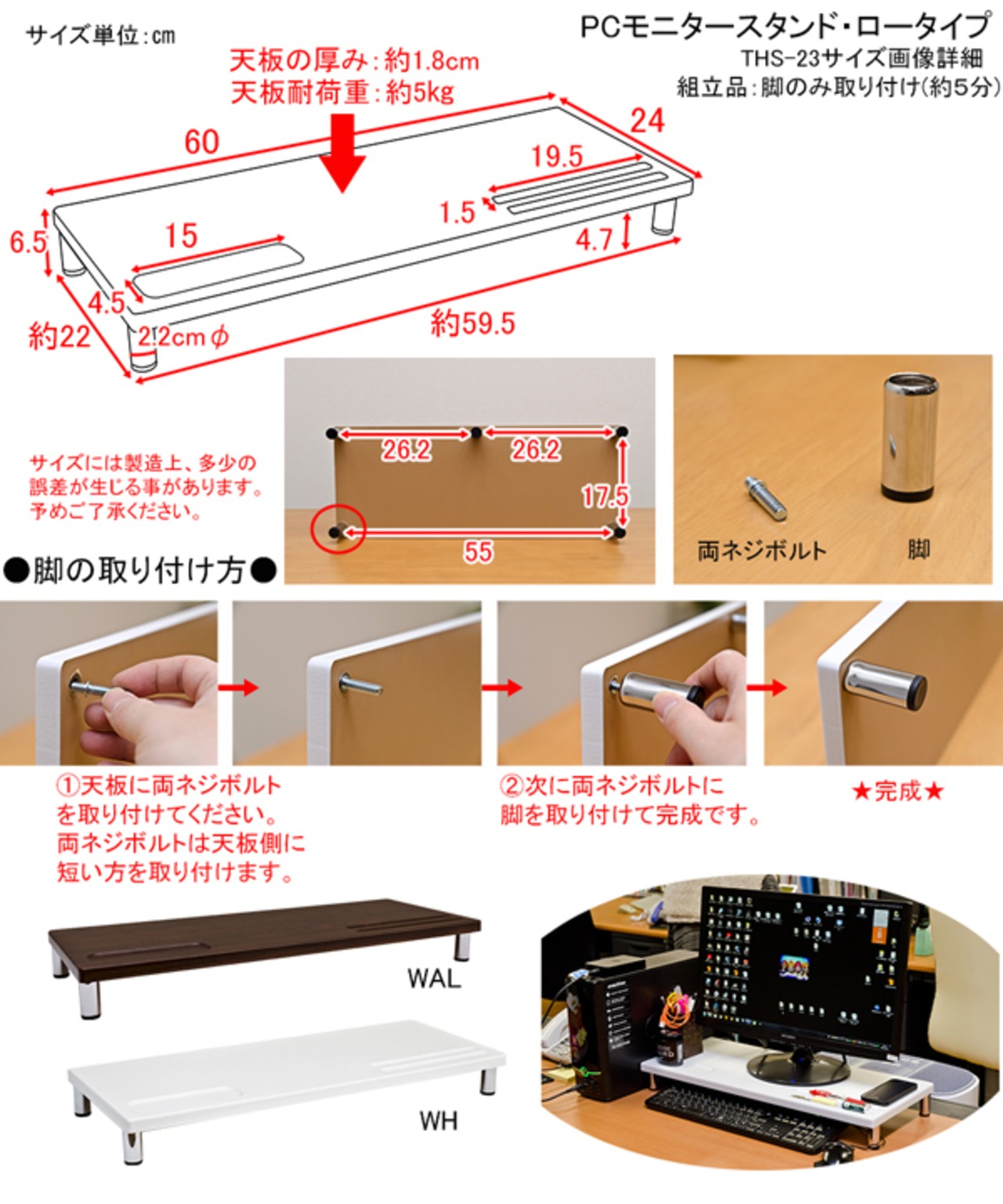 脚は両ネジボルトでネジ込むだけなので工具も要りません