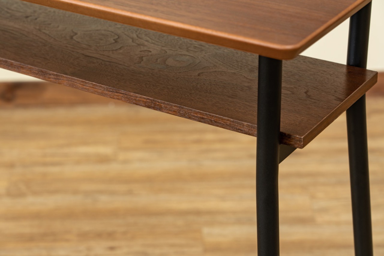 木目柄の天板と丈夫なスチールを組み合わせたカウンターテーブルです